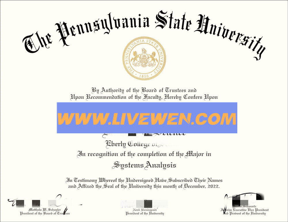 在美国如何买到PSU毕业证书,做 宾夕法尼亚州立大学学位证书 多少钱,Buy Penn State Fake diploma,宾州州立是获得教育部认可备案的学习,毕业拿到学位以后是可以进行学历认证的,如果你无法毕业等可以办理一份一比一的PSU文凭成绩单,并且可以用于留信网入库可查,留信认证在回国工作方面有一定的作用。