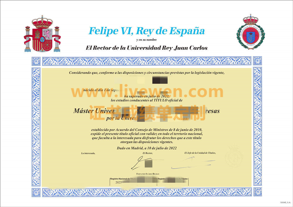 在西班牙印刷毕业证是非常繁琐的,如果您急需西班牙毕业证,可以找我们定制一份:胡安卡洛斯国王大学毕业证书、Universidad Rey Juan Carlos 学位证书、胡卡国王大学学位证书和成绩单、西班牙大学临时毕业证明、我们均是一比一排版制作的。