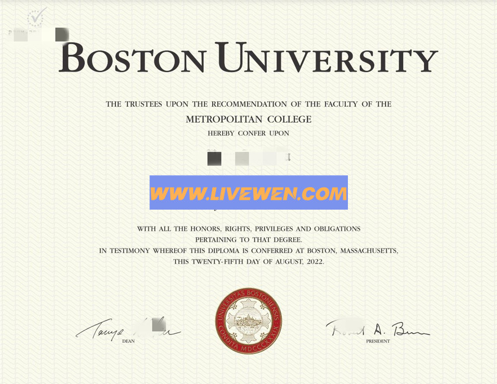 留学Boston University没毕业?回国工作需要波士顿大学毕业证?我们可以完美复刻一份:美国大学毕业证成绩单、BU文凭、BU学位证成绩单、波士顿大学毕业证、波士顿大学硕士学历证书。
