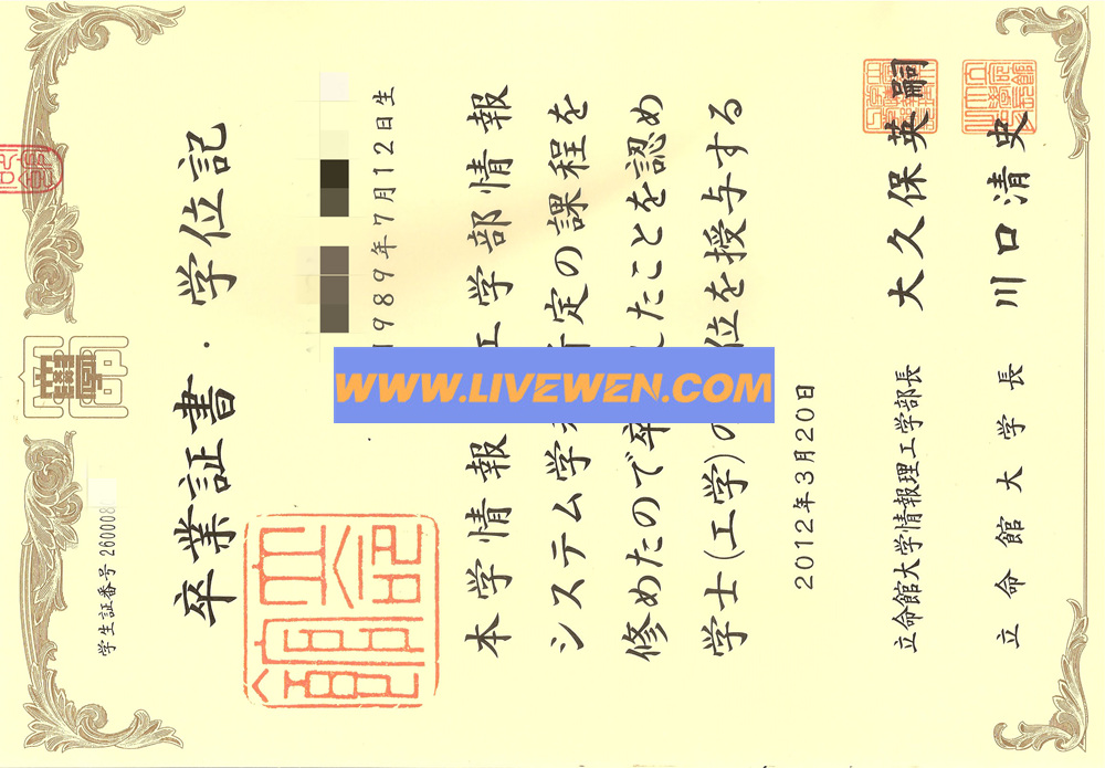 日本大学毕业证、立命馆大学学位记、定制日本大学学位记、日本大学学位证成绩单、日本大学成绩单办理。