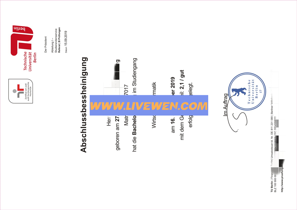 买法国大学文凭柏林工业大学毕业证书办理柏林工大学位证成绩单TU Berlin毕业证文凭办理 法国硕士学位证书
