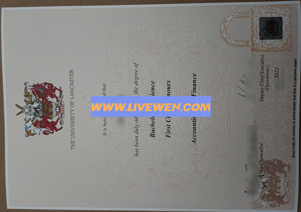 一比一定制英国学位证书、兰卡斯特大学毕业证、兰卡斯特大学学位证 底纹完美复刻、英国大学毕业证办理、99%-100%一模一样工艺水平。