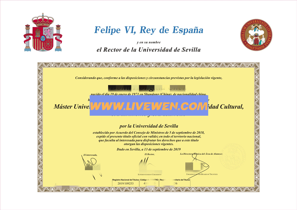 定制西班牙大学文凭、塞维利亚大学毕业证、办理西班牙大学毕业证、西班牙临时毕业证明。