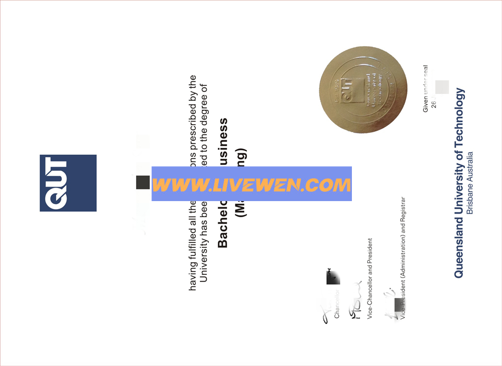 买澳洲大学文凭、昆士兰科技大学毕业证、QUT毕业证成绩单制作、QUT学位证办理、澳洲QUT本科学历学位认证、QUT硕士学历证书、澳洲留信网认证可查、非官方授予学位、仅是原本破碎复原、影视道具、副本。