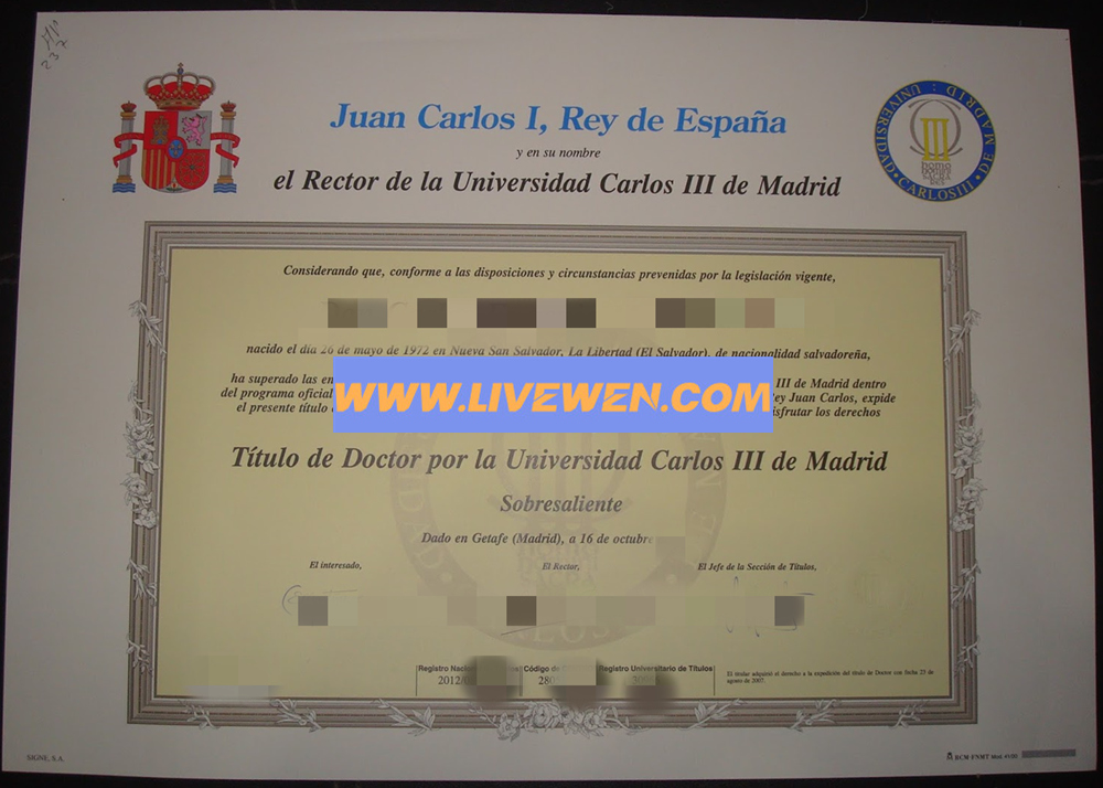 西班牙大学毕业证、马德里文凭中心、卡洛斯三世大学毕业证、西班牙学位证成绩单仿制、Universidad Carlos III de Madrid diploma degree transcript、留信网认证办理。