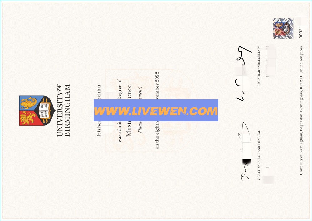 英国篇】UoB毕业证成绩单(伯明翰大学学位证书)认证文凭