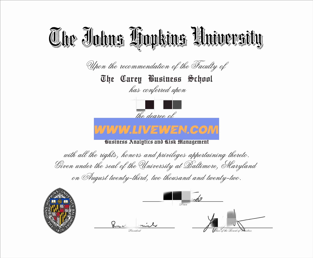 JHU毕业证书约翰霍普金斯大学JHU毕业证成绩单