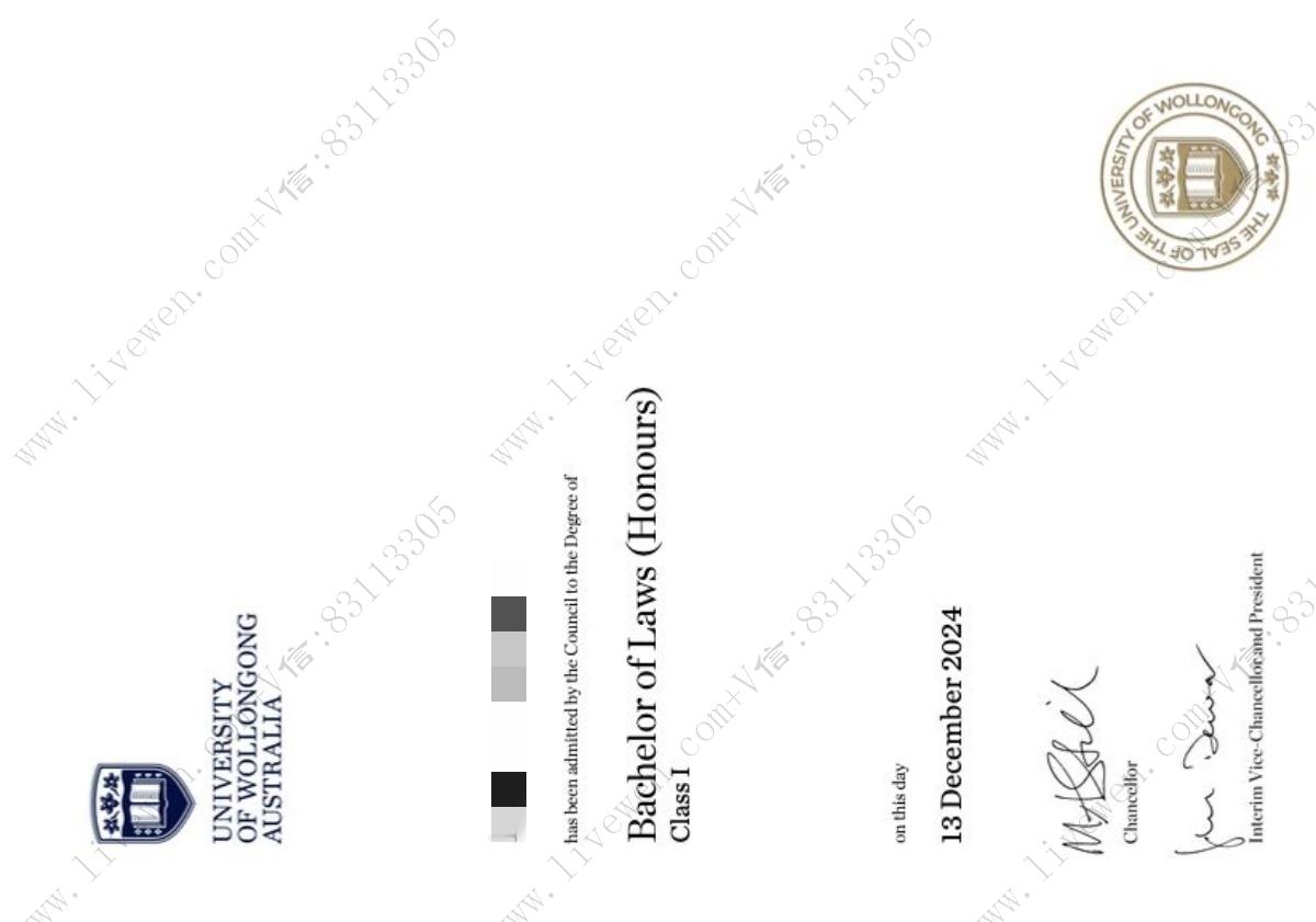 UOW学历证书PDF电子版【办卧龙岗大学毕业证书】