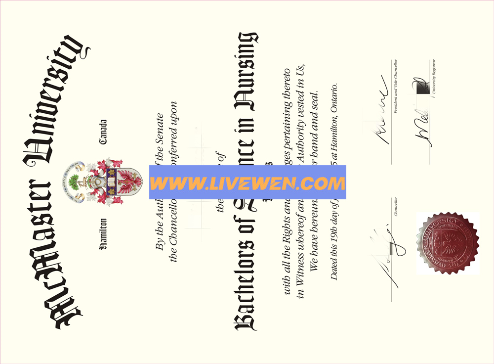 仿制麦克马斯特大学毕业证McMaster毕业证书快速办理