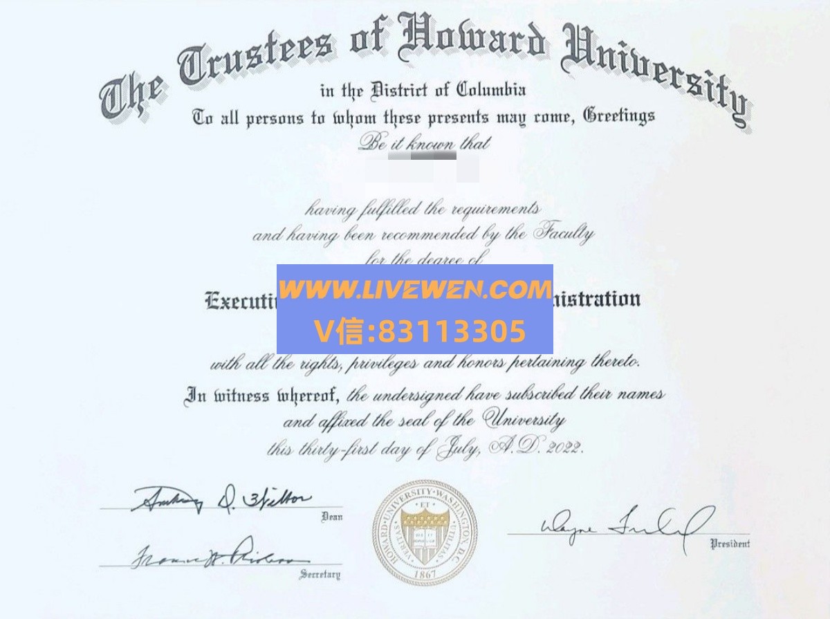 Howard学历证书PDF电子版【办霍华德大学毕业证书】